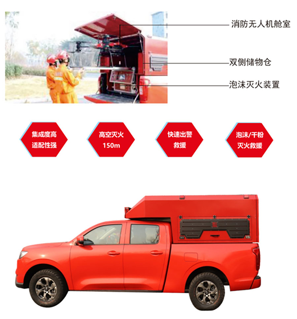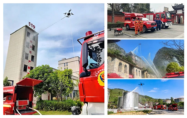 高空灭火救援快反系统集高效灭火、空中作战时间长,以及物资抛投、远距离破窗、喊话搜救、应急照明、自动避障、精准锁定火源、多角度控制火点等功能于一体。该系统采用模块化设计理念,搭载自研高层无人机灭火系统,可适应不同场景下的应用需求,是全新一代消防救援装备。能实现3分钟快速展开,对150米高空火灾进行大跨度全方位扑灭,有效解决超高层建筑火灾消防救援难题;同时,即便在狭窄道路、消防救援通道不畅通等复杂环境下,也能开展作战救援,助力提升消防人员救援响应速度与灭火效率。