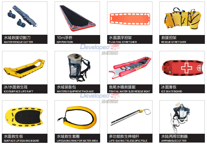 水域救援个人防护包含湿式水域救援服、激流 救⽣⾐、消防专用救⽣⾐、远距离抛投救⽣器、抛 投救援绳、救援通讯设备等装备,保证在多种⽔⾯环境情况下的消防救援⼈员⾃⾝安全和快速解救被困⼈员,为应急救援作业提供了便利。